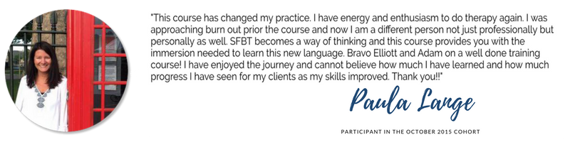 I didn’t feel alone anymore. Finally, there were people I could reach out to that would guide me within the parameters of Solution Focused thinking instead of away from it.